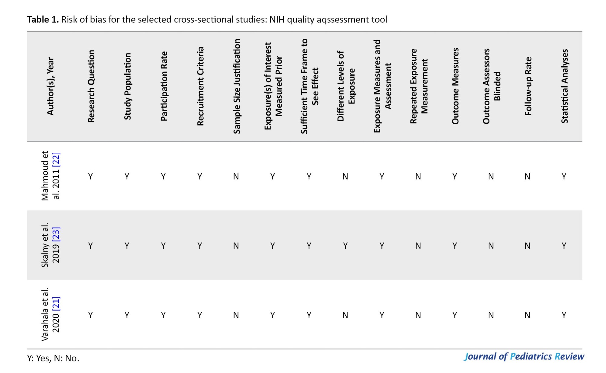 The risk of bias in the included studies was assessed using the National Institutes of Health (NIH) quality assessment tool and Cochrane collaboration tool (Tables 1 and 2).