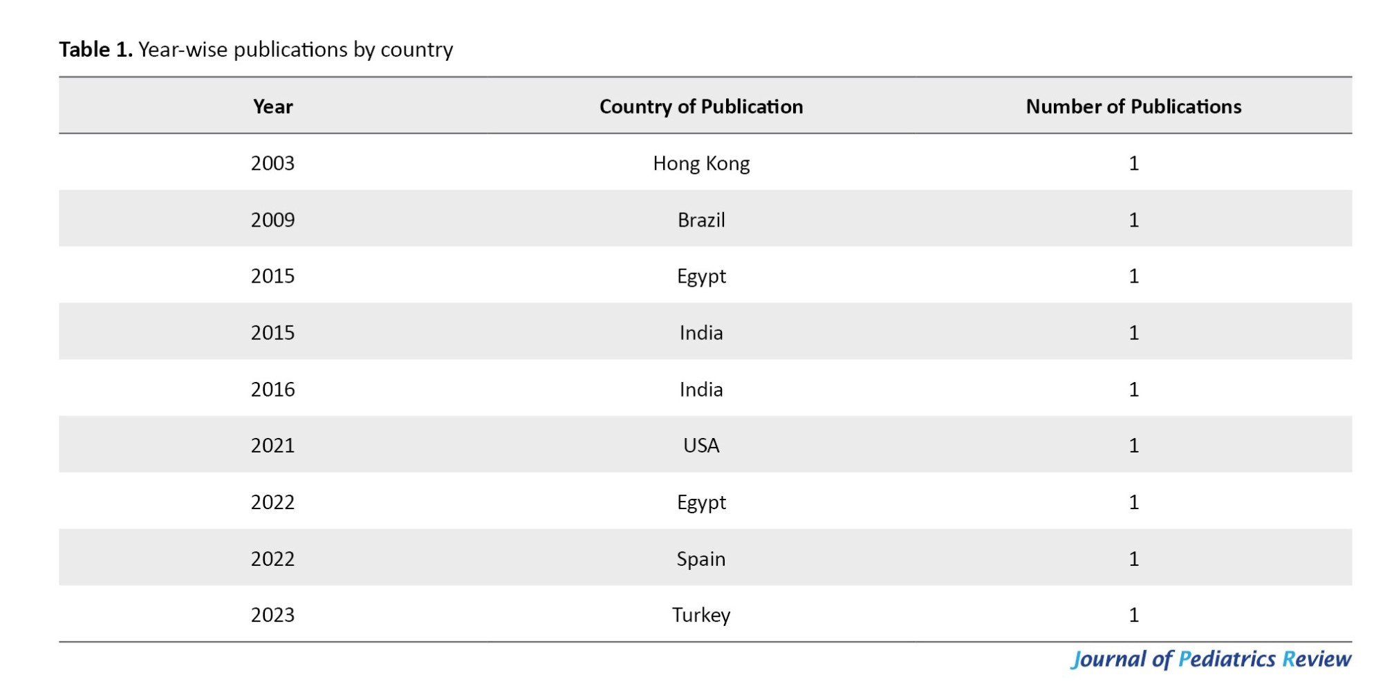 The table and graphs show trends in studies conducted across different countries and offer a thorough summary of year-by-year publications on physiotherapy therapies in NRDS. The table aids in identifying research contributions worldwide by categorizing studies by year, number of publications, and place of origin.